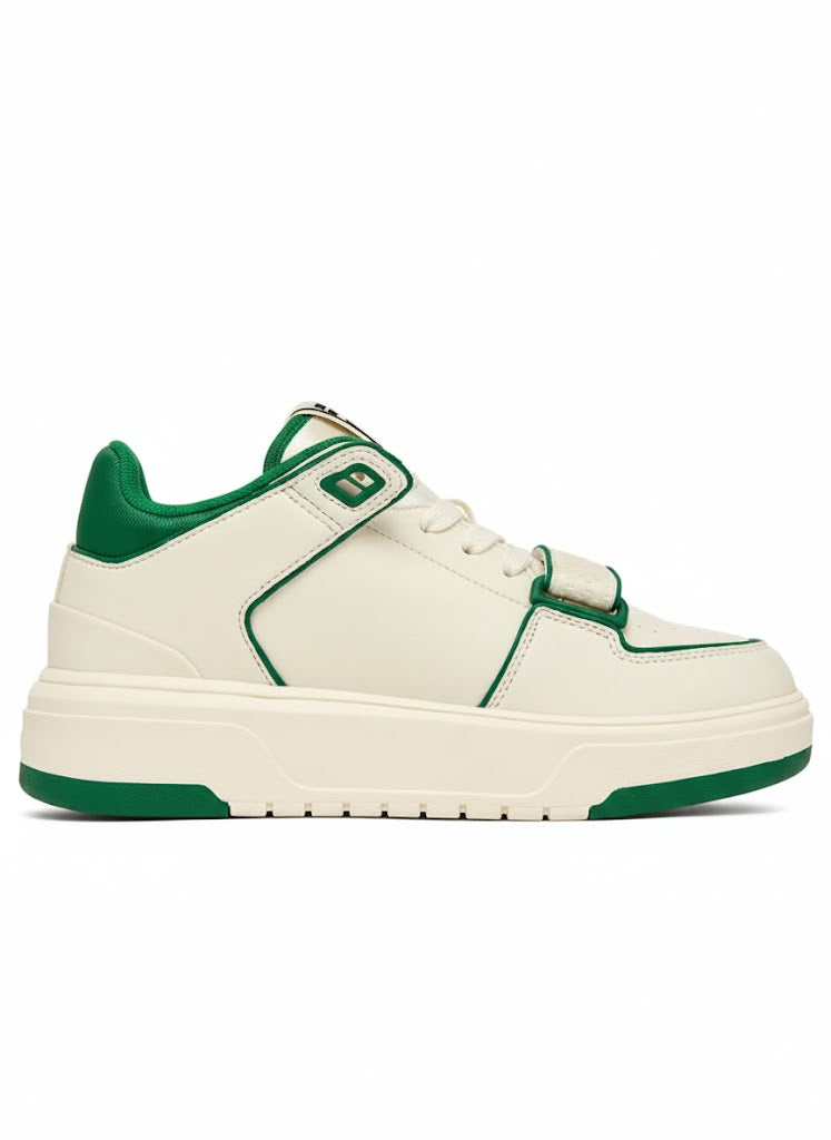 Premium Look: The upper is crafted from a rich, creamy off-white material with striking green accents on th